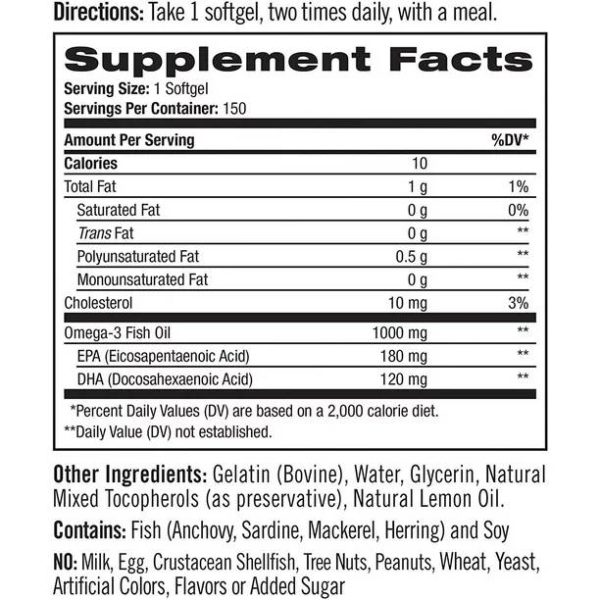 Avec 1 000 mg d’huile de poisson purifiée et saine, vous pouvez fournir à votre corps un équilibre adéquat des nutriments nécessaires pour soutenir la santé des yeux, du cœur et des os.